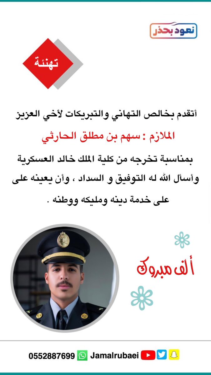 عبدالرحمن القريني A Twitter الحمدلله والشكرلله على فظله وتوفيقه على تخرج ابني تركي من كلية الملك خالد العسكريه سائلا الله العلي القدير ان يوفقه وزملاءه في خدمة دينهم ومليكهم ووطنهم Https T Co G9hvjpxsjf