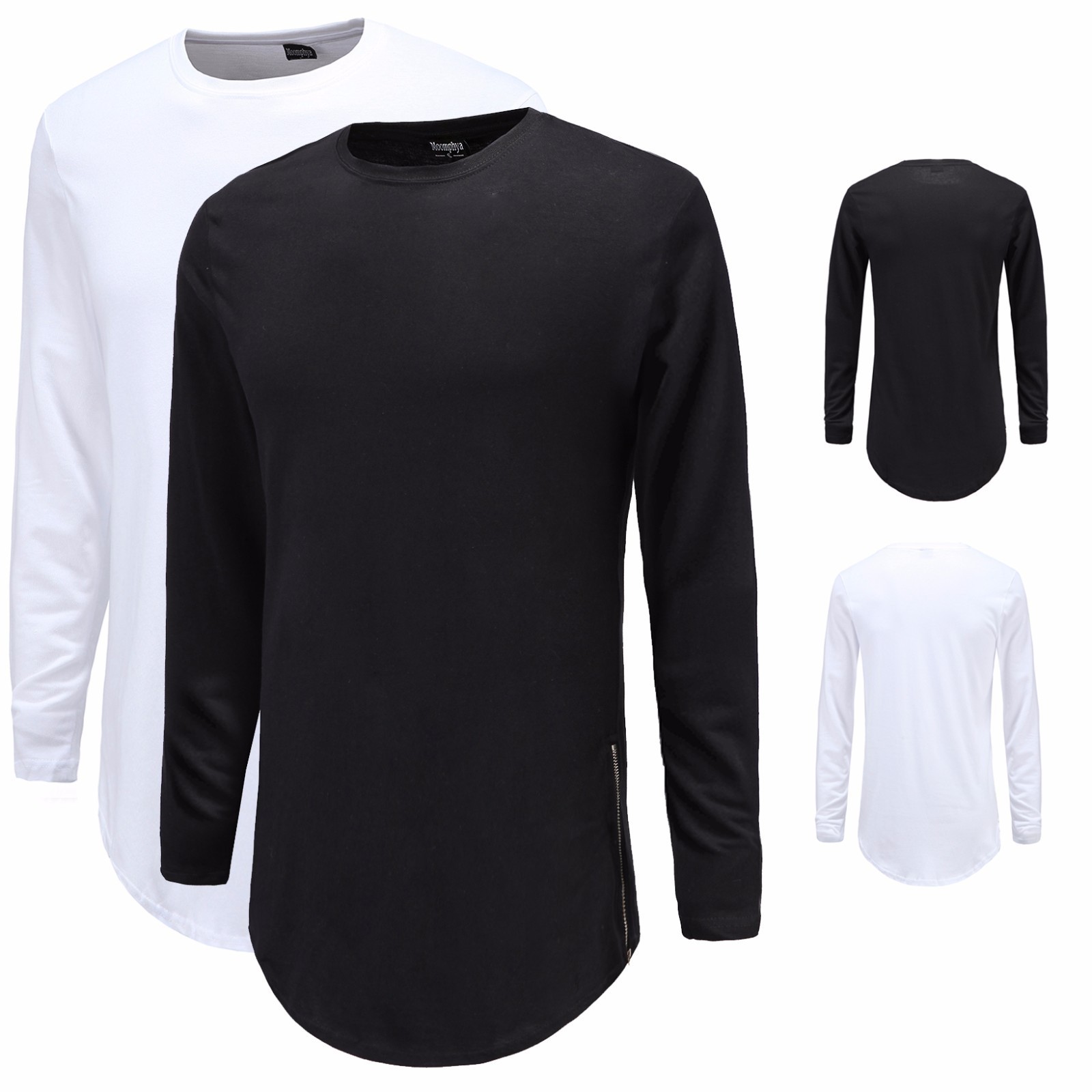 Men S Curved Hem Long Sleeve Swag High Low Side Zipper Hip Hop Top T Shirt Ebay